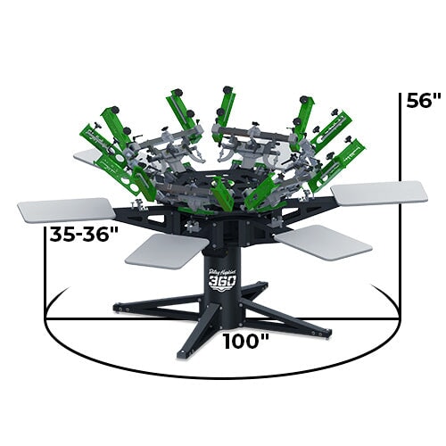 When Speed, Precision, and Consistency are essential, it's time to Rev Up Your Printing Power with the Riley Hopkins 360. With the green light flashing, Shift Your Prints into High Gear and set new benchmarks in screen printing excellence.
