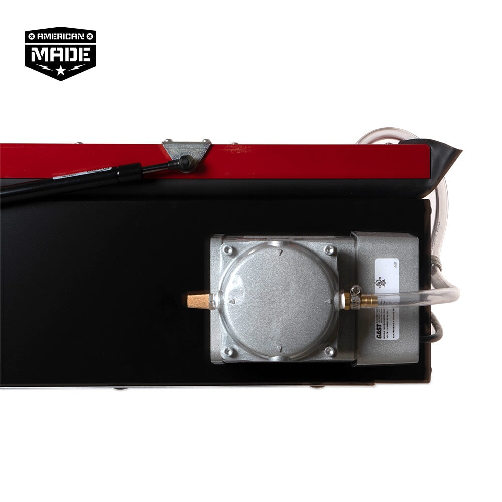 The purpose of the vacuum is to create the tightest positive contact between the glass, film, and emulsion. Having tight, strong contact to the point where the black ink on the film is firmly against the emulsion means that light has difficulty wrapping around the film. The end result โ a straight, clean burn with sharp edges. Vacuum units provide a superior tool for creating detailed image resolution.