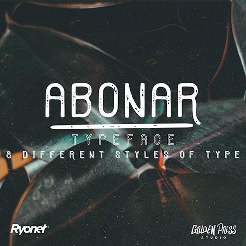 Ready to chill, relax, and enjoy the moment? Looking at this font will make you feel like you're on a beach in Hawaii with The Beach Boys drifting from a nearby speaker as you're watching surfers catch some gnarly waves.The Abonar font has eight different styles, giving you options to alter the font to the vibe you're feeling. The sandy texture, gentle curves, and soft composition of the white-lettered font is best for headlines and logo designs.