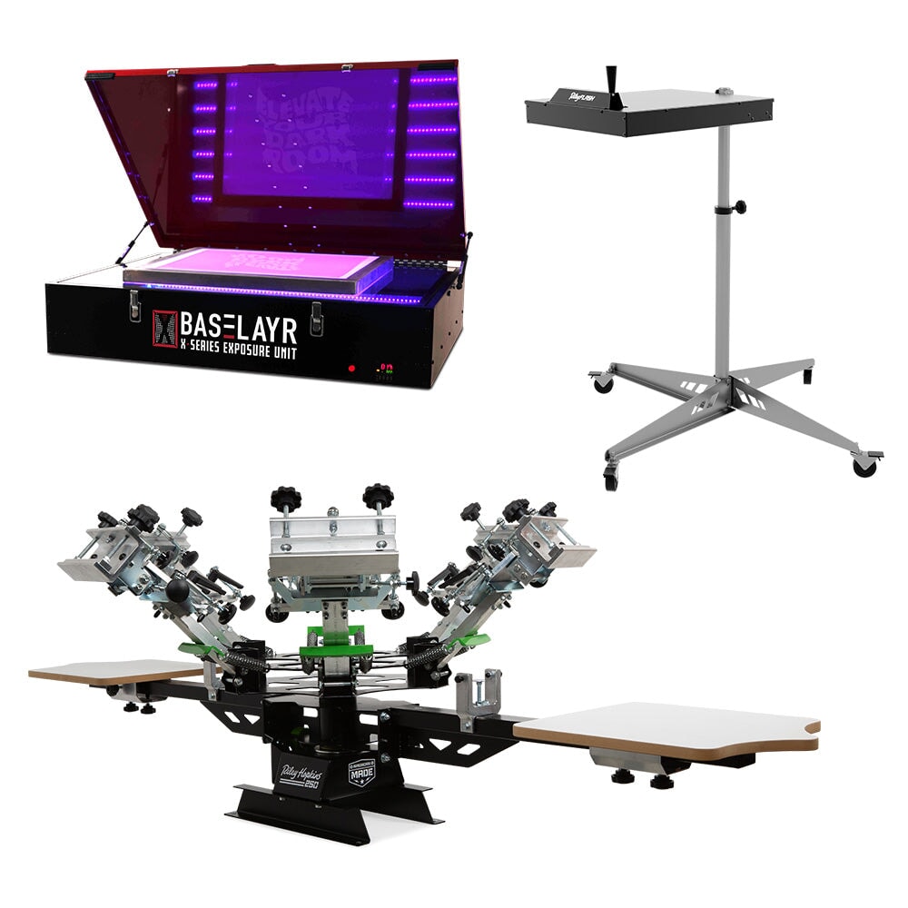 Start your screen printing business with the right equipment. The Riley Hopkins® 250 Equipment Only Screen Printing Kit offers the bare essentials from industry leaders like Riley Hopkins® and Baselayr®. You will jumpstart your new career with professional equipment, generating professional, high-quality results. Securing top-notch equipment means you have the freedom to choose other screen printing supplies like inks, squeegees, screens, emulsions, and more.