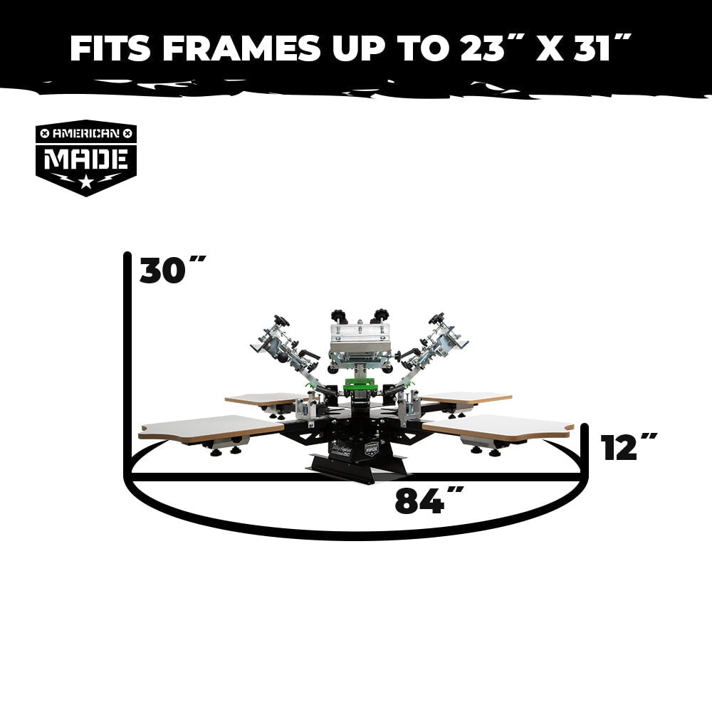 Perfecto para impresoras que buscan ejecutar su producción en un garaje, un dormitorio libre o sótano, la prensa es fácil de configurar. En primer lugar, la prensa llega al 90% preassembrado. Para armar el resto de la prensa, todo lo que necesita es un destornillador de cabeza de Phillips, dos llaves de ½ "y dos llaves de 9/16". Eso es todo. Tendrás la presión en funcionamiento en minutos. Atornillar el presionado sobre una mesa o banco de repuesto, o colóquelo en un Carro de riley hopkins, que posee seis pantallas y tiene ruedas retráctiles de servicio pesado para la movilidad y la colocación semipermanente.
