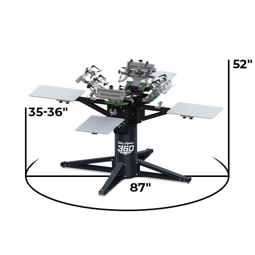 The Riley Hopkins 360 stands strong on an adjustable CNC-constructed base, offering up to a 3-inch adjustment to perfectly align with any screen printer’s preferred working height.