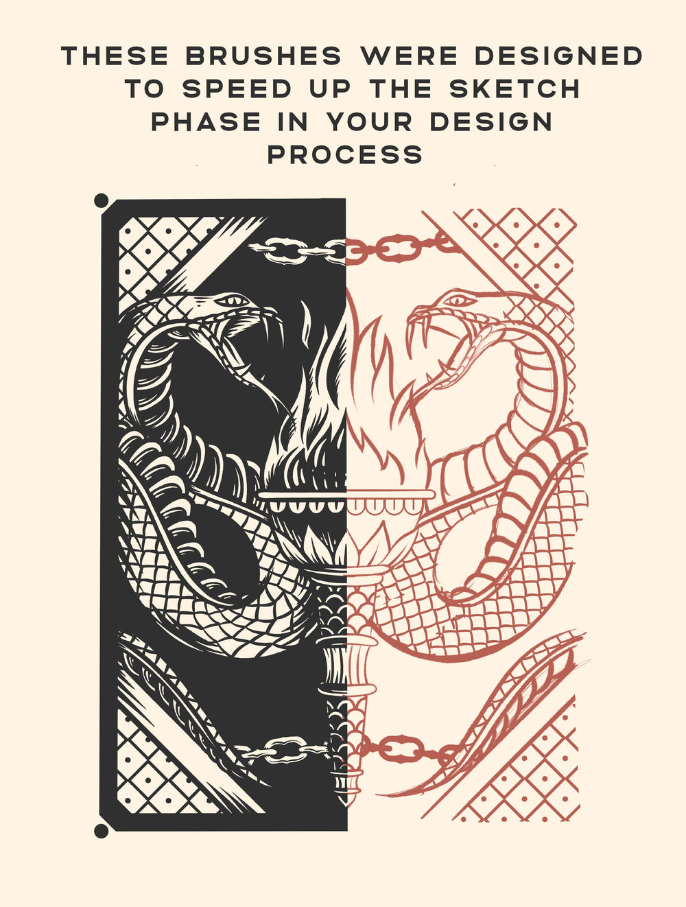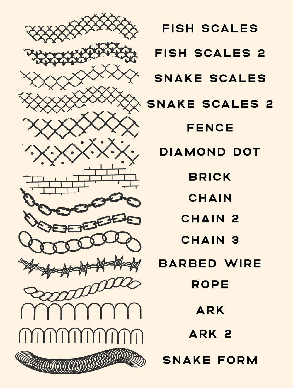 Check out our traditional tattoo inspired pattern brush pack! In this pack, there are 15 different brushes that emulate classic patterns you see in many tattoos. We recommend these brushes be used for the sketch phase of your drawing process to speed up your workflow so you can get the basic concept of your designs as quickly as possible! These brushes are for Procreate on the iPad only.