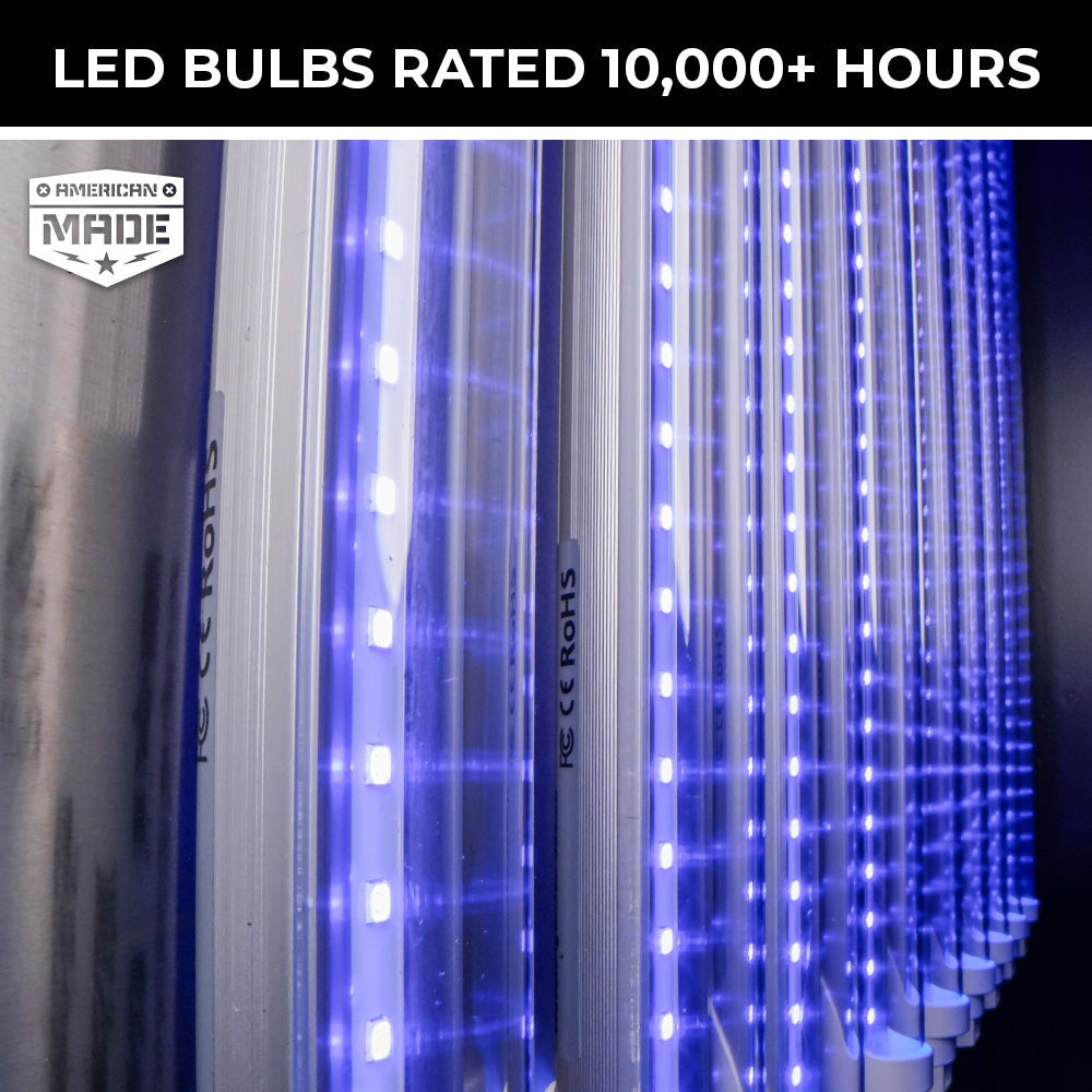 • Bulbs: 9 x T8 405nm LED UV bulbs
