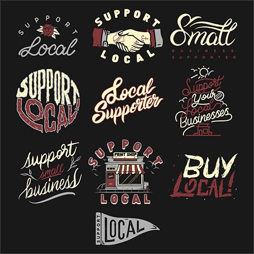 With the Support Local Vector Pack, you can continue spreading the message. The 10 hand-drawn designs share the idea in their own way. Use the designs to promote, sell, or giveaway to support local businesses within your community. Encourage people to shop local, eat local, buy local.