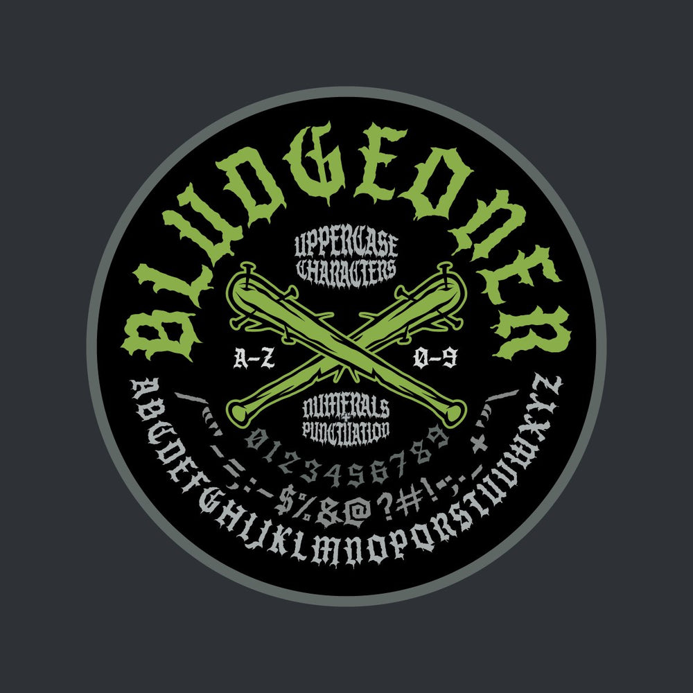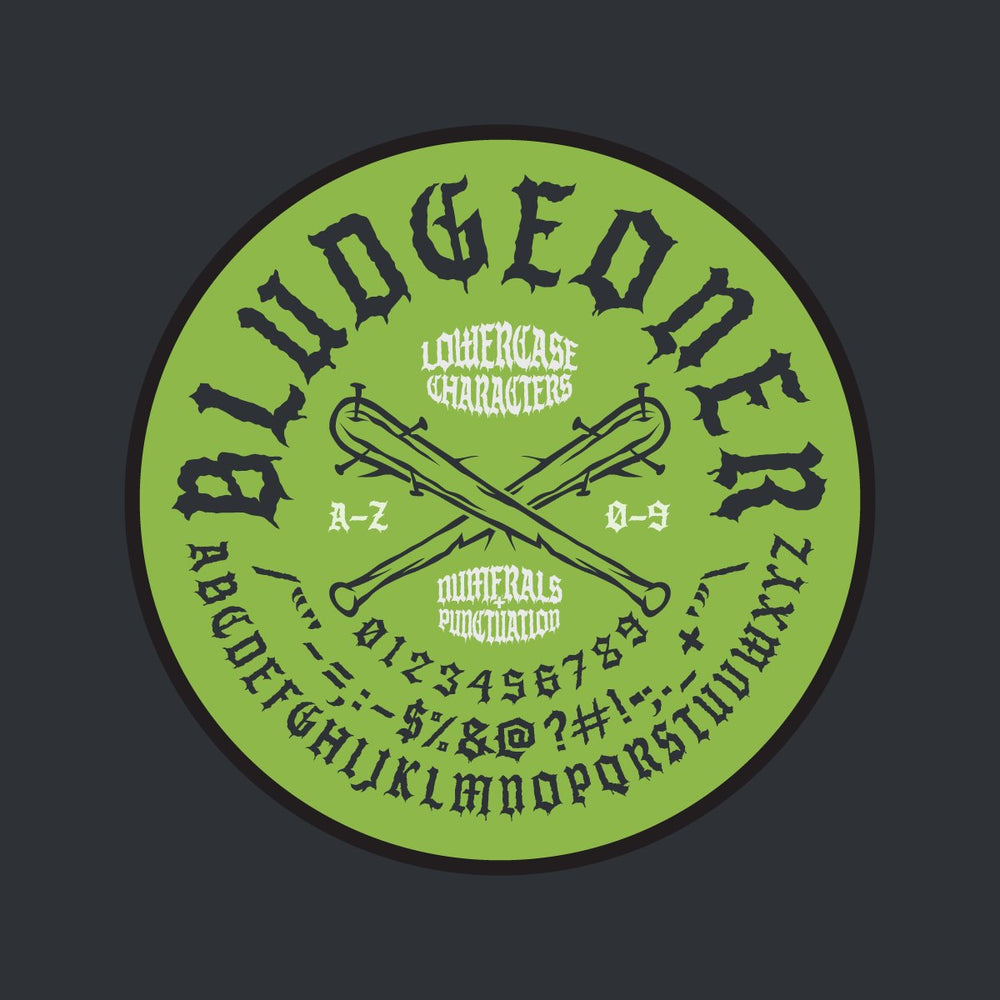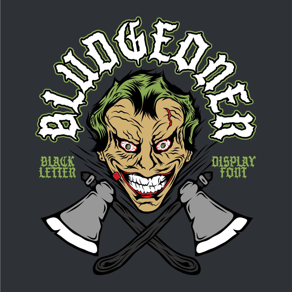 A rough and dirty blackletter display font that hits like a bat to the teeth. Bludgeoner is best used in headlines, and other large format type, although it's legibility at smaller scales might surprise you.