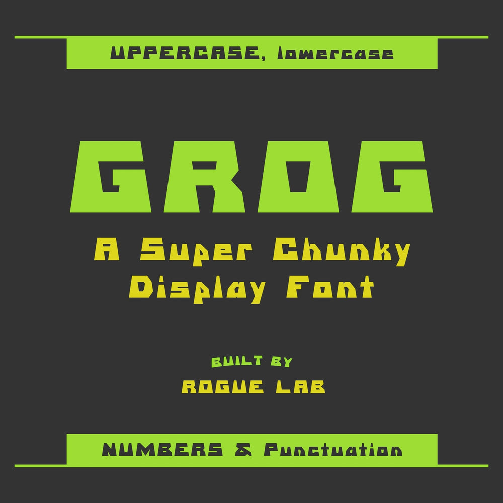 A chunky, knuckle dragging display font built for designs that need to clobber anything in their path. Grog is best used in headlines, logos, product design, and much more.