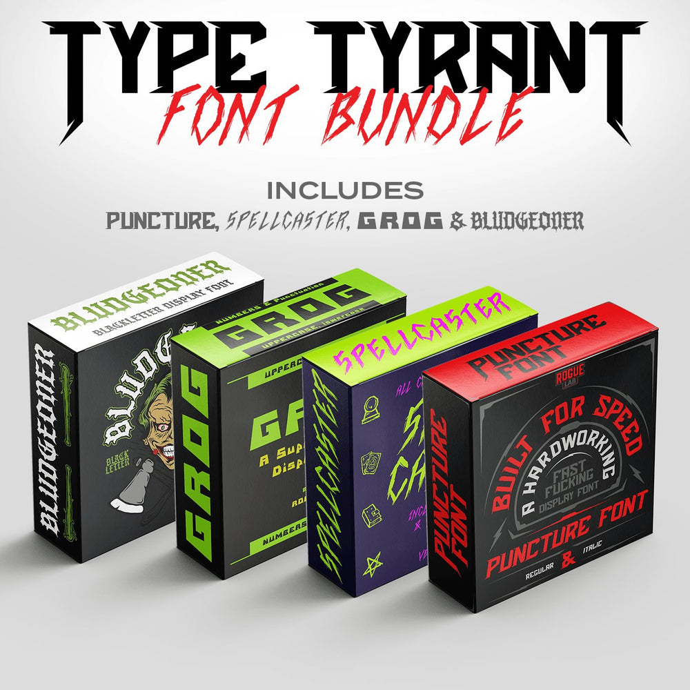 This font pack includes a variety of our heaviest hitters so you can rule over any project with ease.